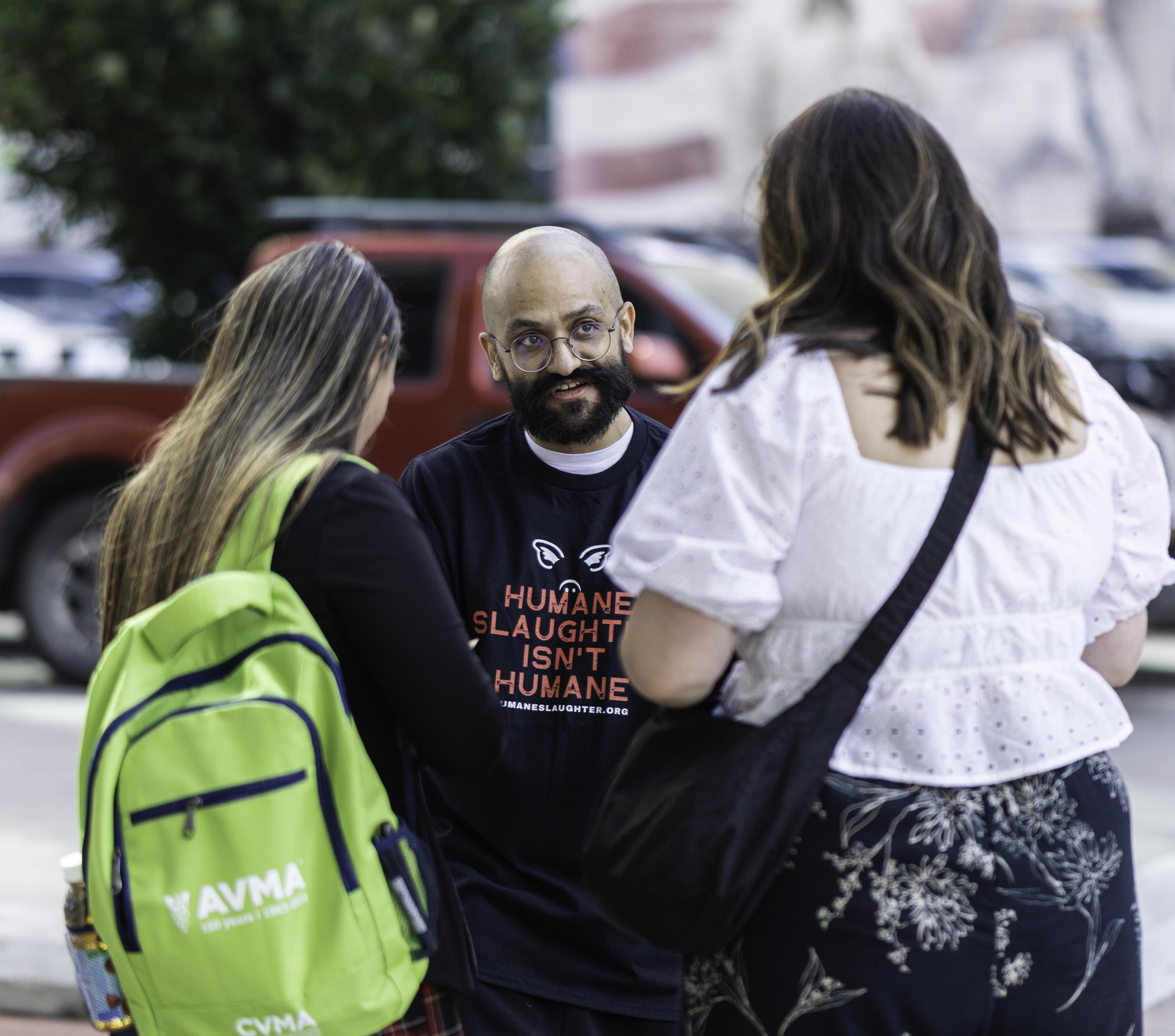 Dr. Mickey Pardo, a postdoctoral researcher at Colorado State University and an expert in animal behavior and wildlife ecology, was among the demonstrators. He said, “Given the AVMA’s stated commitment to sustainability and animal welfare, we are calling on them to bring their actions in line with their values.”